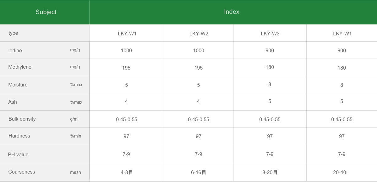 Coconut water purification of carbon with high quality coconut shell as raw material, the physical method of high temperature activation (converter) made of refined high-performance activated carbon series, has high strength, pore developed and significant characteristics of adsorption performance is good, low resistance, the products are mainly used in the central water purifier, drinking water, pure water, wine, beverage, industrial water decolorization, deodorization and removal of organic matter, residual chlorine, etc.