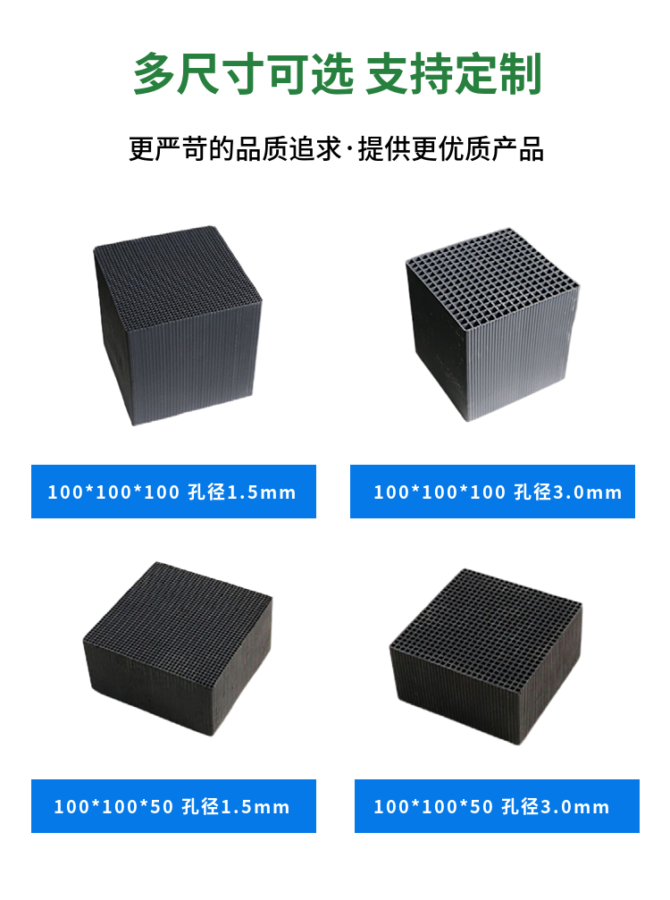 有普通型與耐水型兩種,均采用優(yōu)質(zhì)粉末活性炭和輔助材料精制成,蜂窩活性炭通過蜂窩狀結(jié)構(gòu),使產(chǎn)品體積密度小、比表面積大、吸附效率高、風阻系數(shù)小,有優(yōu)良的氣體動力積縮小,設(shè)備能耗降低,降低吸附床的造價和運行成本,同時對廢氣處理凈化效率高,凈化后氣體完全滿足環(huán)保排放要求,蜂窩型活性炭適用于中低濃度、大風量的各種有機廢氣凈化,廣泛用于處理含有甲苯、二甲苯、苯等苯類、酚類、酯類、醛類等有機氣體及惡臭味氣體和含有微量重金屬各類氣體的吸附床上,以及室內(nèi)空氣中各種有害氣體的吸附去除。