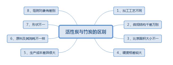 竹炭只經(jīng)過炭化階段,而活性炭除炭化工藝外,還要經(jīng)過活化、酸洗和烘干階段。