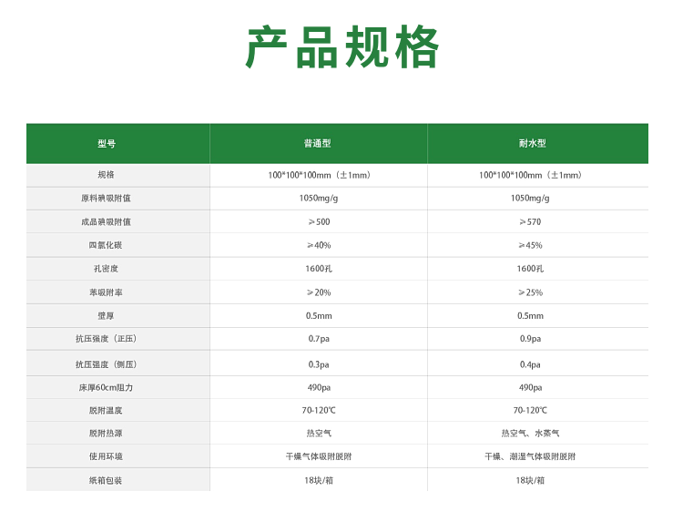 有普通型與耐水型兩種,均采用優(yōu)質(zhì)粉末活性炭和輔助材料精制成,蜂窩活性炭通過蜂窩狀結(jié)構(gòu),使產(chǎn)品體積密度小、比表面積大、吸附效率高、風阻系數(shù)小,有優(yōu)良的氣體動力積縮小,設(shè)備能耗降低,降低吸附床的造價和運行成本,同時對廢氣處理凈化效率高,凈化后氣體完全滿足環(huán)保排放要求,蜂窩型活性炭適用于中低濃度、大風量的各種有機廢氣凈化,廣泛用于處理含有甲苯、二甲苯、苯等苯類、酚類、酯類、醛類等有機氣體及惡臭味氣體和含有微量重金屬各類氣體的吸附床上,以及室內(nèi)空氣中各種有害氣體的吸附去除。