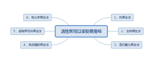 利用微生物的新陳代謝,將吸附在活性炭上的污染物質氧化降解的方法稱作生物再生法。活性炭的孔徑一般只有幾納米,微生物很難進入其孔隙內部,通常微生物細胞酶可以流至細胞胞外,通過活性炭對酶的吸附,在炭表面形成酶促中心,分解污染物,達到再生的目的。